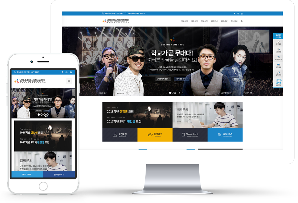 크로스디자인에서 남예종예술실용전문학교 홈페이지의 반응형 홈페이지제작 수주 후 완료 진행하였습니다.