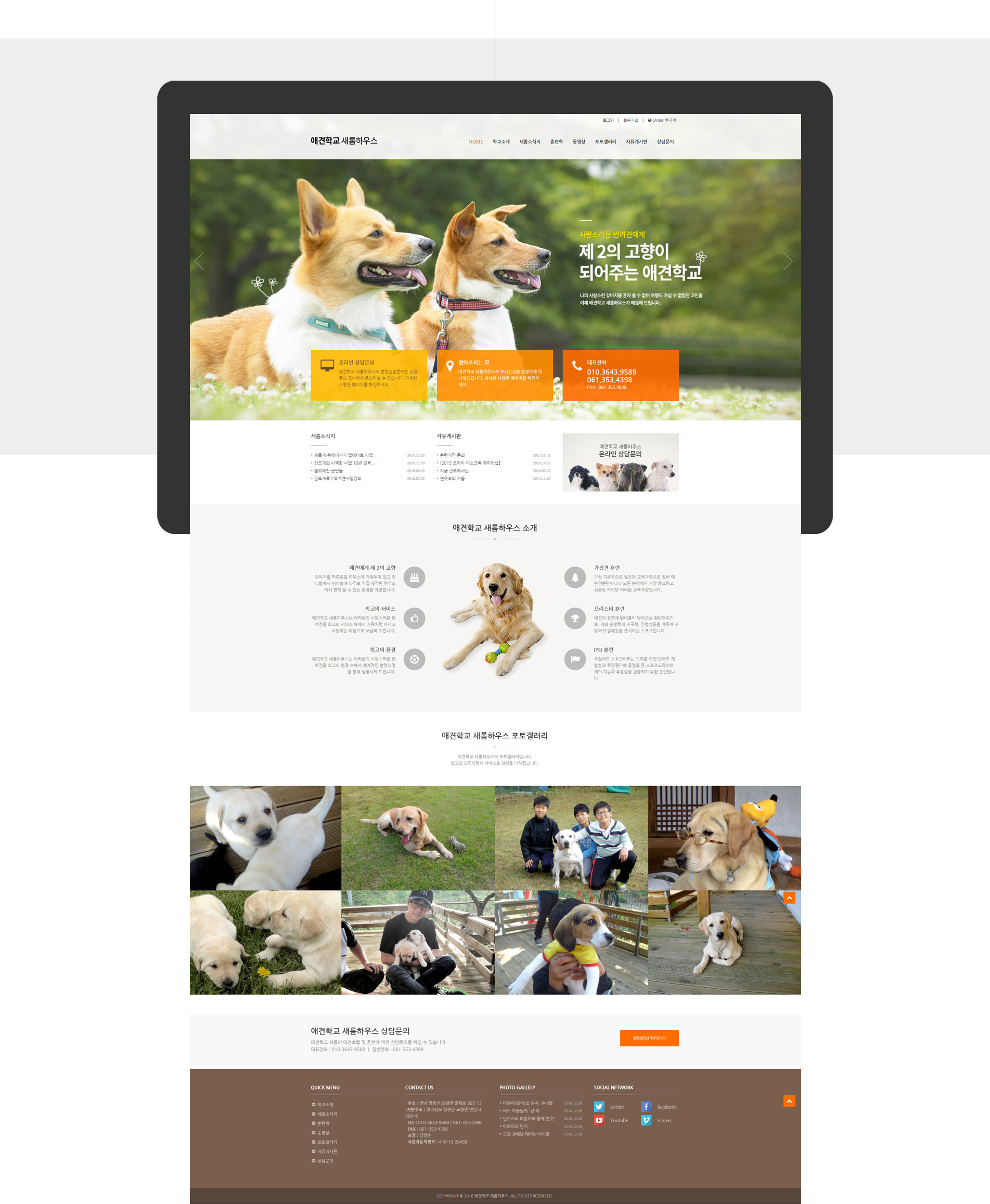 1월 05 Love0 애견학교 새롬하우스 By 크로스디자인 Corporate Portfolio, Portfolio 애견학교 새롬하우스 크로스디자인에서 애견학교 새롬하우스 홈페이지의 반응형 홈페이지제작 수주 후 완료 진행하였습니다. CLIENT 애견학교 새롬하우스 RELEASE DATE 2016. 01 TYPE 반응형웹 사이트 바로가기 + 차별화된 홈페이지 제작. 최적화된 반응형웹 크로스디자인에서 차별화된 홈페이지 제작과 최고의 서비스를 제공을 목표로 다양한 개발 경험과 고객의 눈높이 이상에서 생각하며 제작하였습니다.