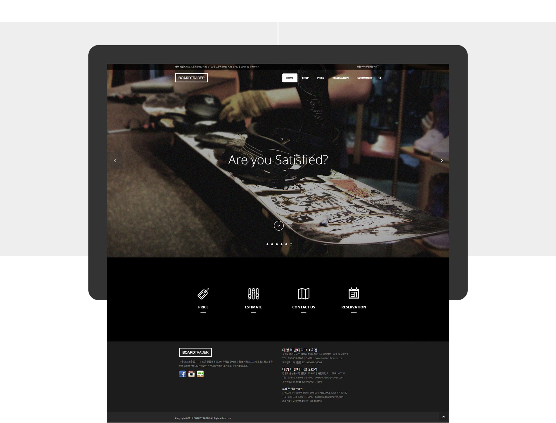 12월 01 Love0 BOARDTRADER By 크로스디자인 Corporate Portfolio, Portfolio BOARDTRADER 크로스디자인에서 BOARDTRADER 홈페이지의 반응형 홈페이지제작 수주 후 완료 진행하였습니다. CLIENT BOARDTRADER RELEASE DATE 2015. 11 TYPE 반응형웹 사이트 바로가기 + 차별화된 홈페이지 제작. 최적화된 반응형웹 크로스디자인에서 차별화된 홈페이지 제작과 최고의 서비스를 제공을 목표로 다양한 개발 경험과 고객의 눈높이 이상에서 생각하며 제작하였습니다.